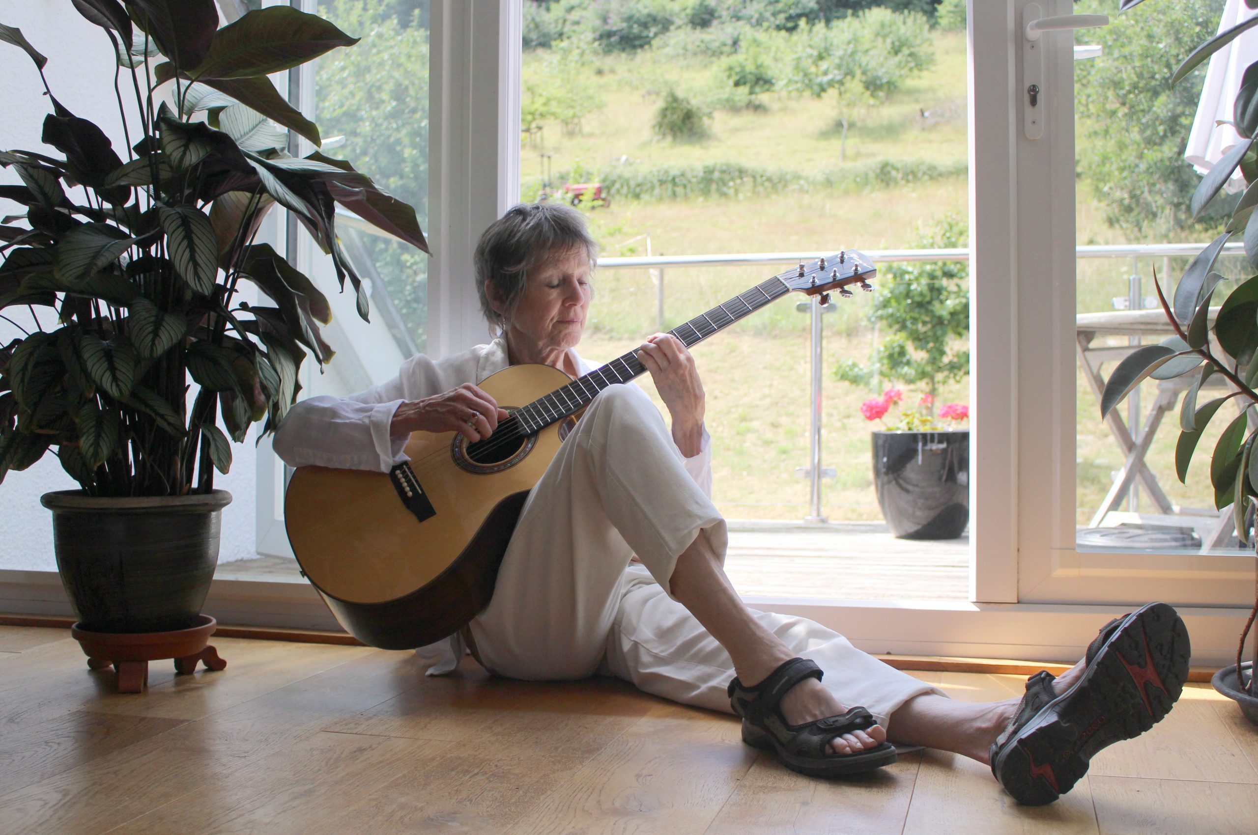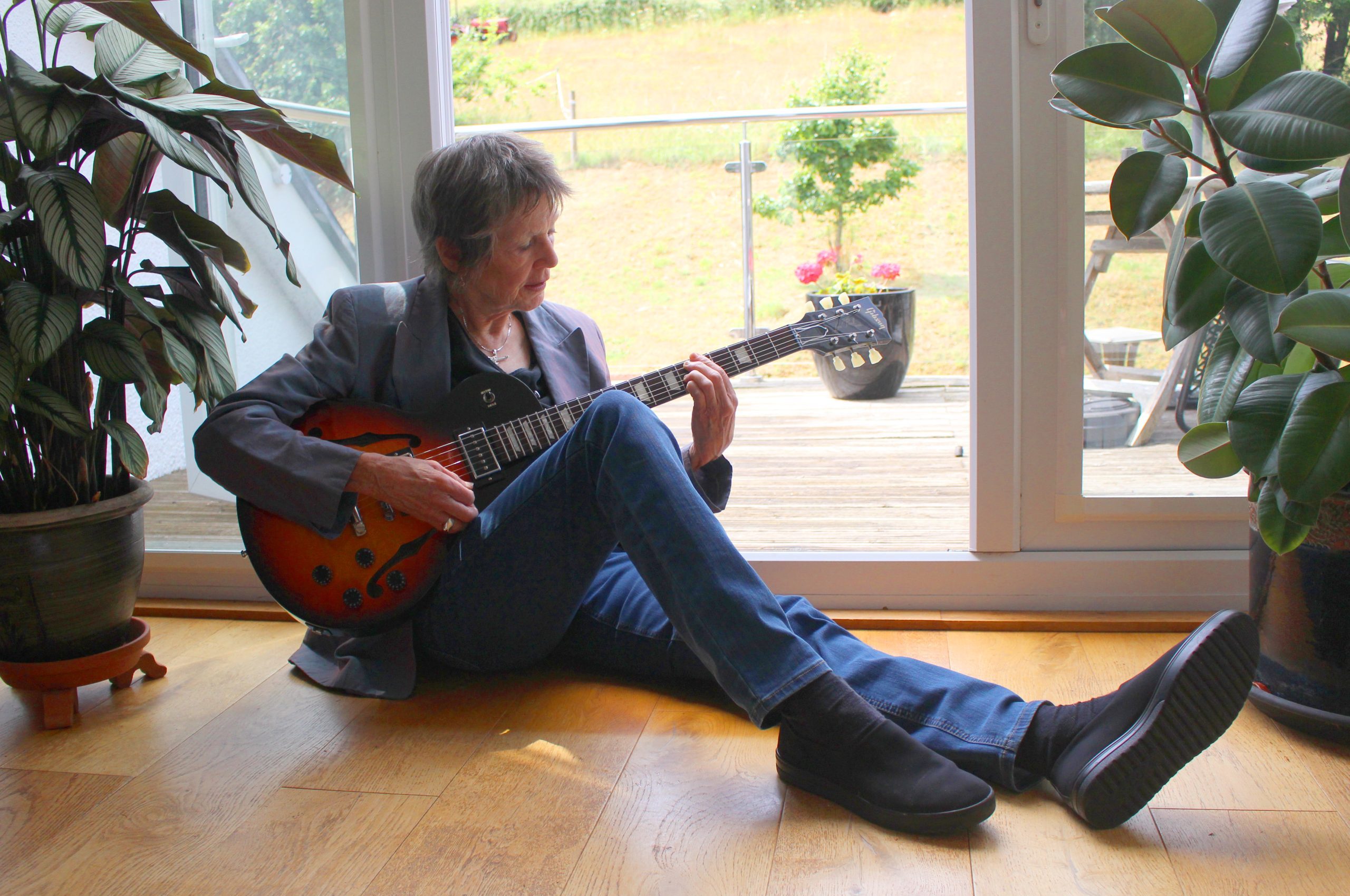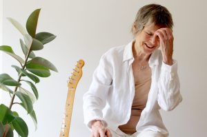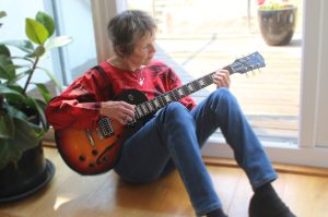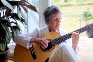 Rosemary Schonfeld was born in Wales and grew up in Toronto. She is a singer-songwriter-guitarist-poet-composer-percussionist-author. In the late 1970s and throughout the 1980s she was one half of OVA, the women’s band who recorded four albums, toured internationally and co-founded a recording studio in London to train women and girls in sound engineering, and where OVA also ran music workshops. After leaving London in 1989 to study Composition at Dartington College of Arts, she remained based in Devon. She created the teaching package for percussionists, ‘Drumātrix’, published an illustrated book of poetry ‘Standing on Your Head’ and continued to run music workshops in the UK and Germany. In 2018 her book ‘Finding Relly – my family, the Holocaust and me’ was published, and she gives talks about her family history for groups and in schools. She continues to write, perform and record music as a solo artist.